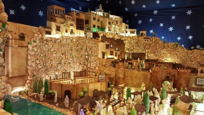 Al respecto, año tras año, los maestros pasteleros diseñan y construyen cada una de las piezas que forman el Belén de Chocolate, añadiendo pequeños detalles de mazapán y azúcar, que han servido para dar forma a las figuritas recogidas en las panaderías, pescaderías, fruterías, además de otros comercios representados en las calles del Belén.