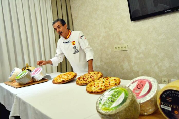 Marquina ha confeccionado tres pizzas, elaboradas con cuatro quesos de Cooperativa de Ganaderos Manchegos para que los invitados y la prensa eligieran una. Ha resultado seleccionada, como decimos “Mar de quesos manchegos”, que además del emblemático producto lleva orejones y membrillo. El acto ha contado con la presencia de la alcaldesa, Inmaculada Jiménez, representantes de “Los Delfines”, el presidente de la Cofradía del Queso Manchego, Ismael Álvarez y la presidenta de la Asociación de Empresarios, Esther Belló.