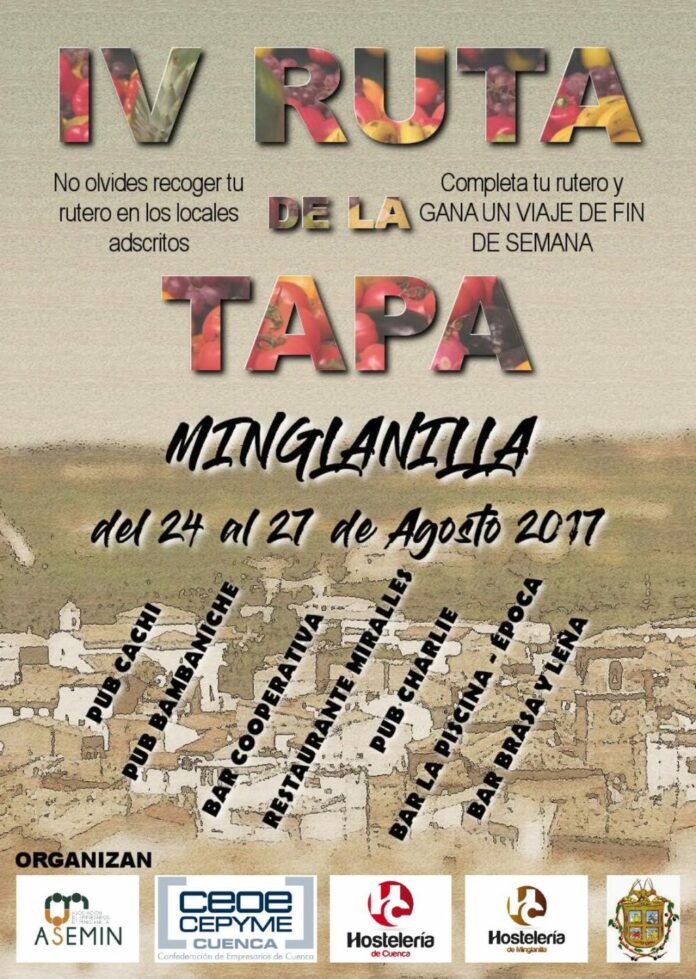 La Asociación de Empresarios de Minglanilla ha puesto en marcha la IV Ruta de la Tapa de esta localidad desde ayer, 24 de agosto, hasta el día 27. El objetivo es dinamizar la actividad hostelera en estas fechas finales del período estival.