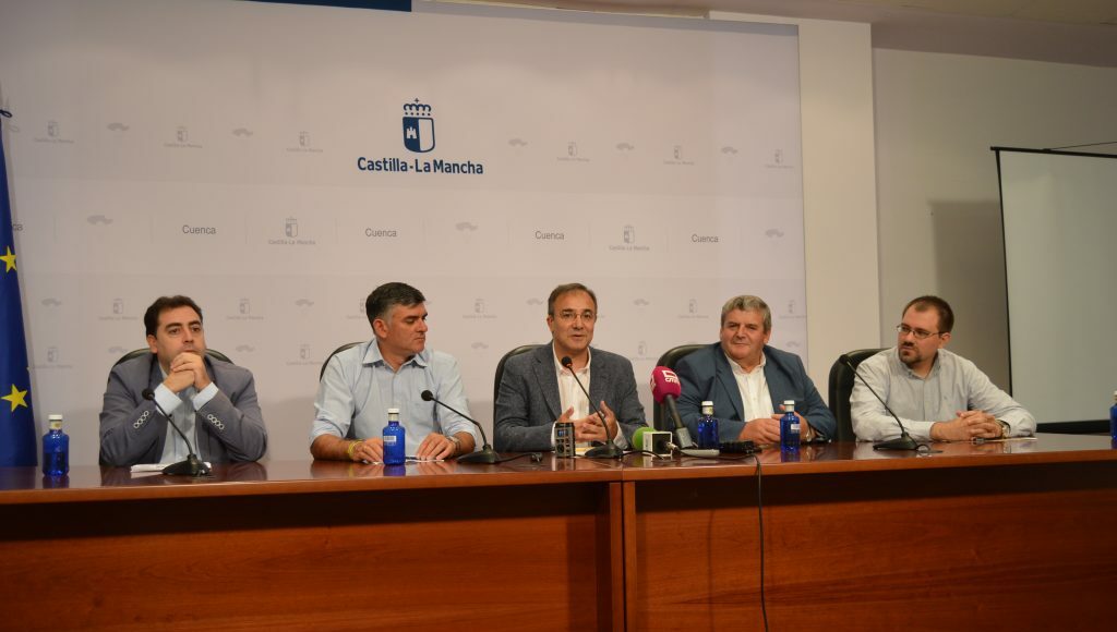 El viceconsejero de Cultura, Jesús Carrascosa, ha acompañado hoy al alcalde de Villamayor de Santiago (Cuenca), José Julián Fernández, y al director del Festival Europeo de Cortometrajes ‘Villamayor de Cine’, Javier Alonso, en la presentación de la décima edición, que se celebrará en esta localidad conquense del 16 al 19 agosto. Al acto también ha asistido el delegado de la Junta en Cuenca, Ángel Tomás Godoy, y el diputado provincial de Servicios Sociales, Cultura y Nuevas Tecnologías, Fran Doménech.