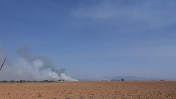 El incendio se declaraba a las 9.30 horas este jueves en una extensión de monte bajo, de arbolado y pasto, en lo que es el camino entre La Pueblanueva y Talavera de la Reina, por lo que la columna de humo era visible desde la ‘Ciudad de la Cerámica’.