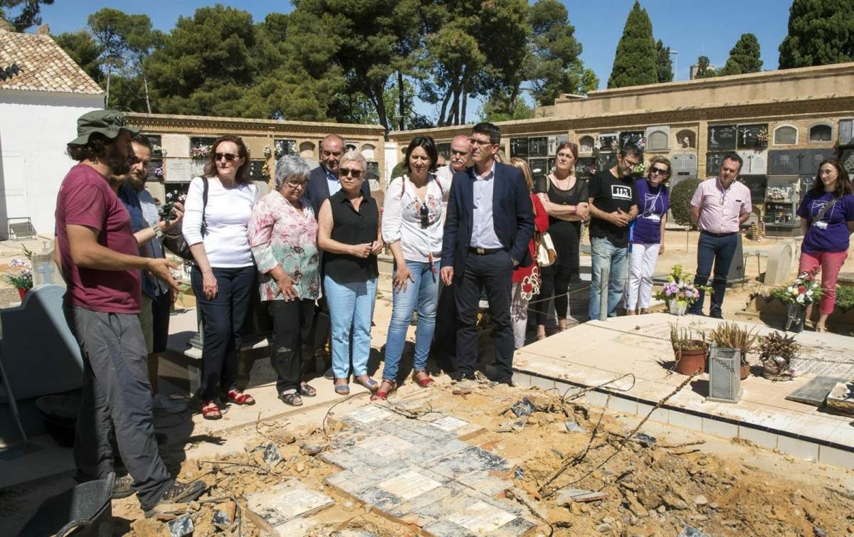 En esta primera jornada de los trabajos de exhumación, promovidos por la Diputación de Valencia han estado presentes el presidente de la corporación provincial, Jorge Rodríguez, y la diputada de Memoria Histórica, Rosa Pérez Garijo, además de la presidenta de la Asociación de Víctimas de la fosa 94, Carolina Martínez y el director arqueológico de la empresa que va a llevar a cabo el trabajo, Miguel Mezquida.