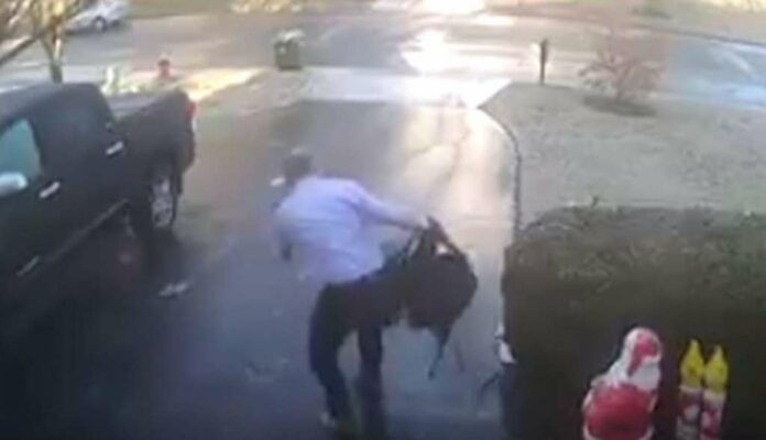 En las imágenes se puede apreciar a un hombre que se las tuvo que ver con el hielo que cubría el asfaltado de su calle. El vídeo fue grabado por la cámara de seguridad de su casa.