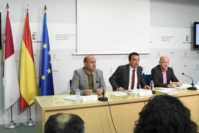El consejero de Agricultura, Medio Ambiente y Desarrollo Rural, Francisco Martínez Arroyo, junto al director general de Desarrollo Rural, José Manuel Martín y al director General de Industrias Agroalimentarias y Cooperativas, Gregorio Jaime, ha dado a conocer también los datos de la agricultura ecológica en Castilla-La Mancha.
