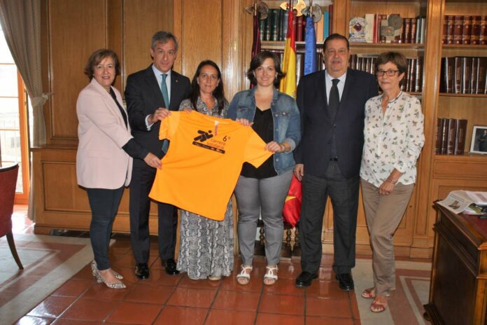 La alcaldesa de Camarena y diputada regional, Rosario García Saco, recibió la camiseta de la Carrera de manos del presidente de Eurocaja Rural, Javier López Martín, la directora de Marketing de Grupo Tello Alimentación, Inés Tello, la directora gerente de AFAEM Despertar, Pilar Sánchez, y la vocal de su Junta Directiva Hortensia Moreno.