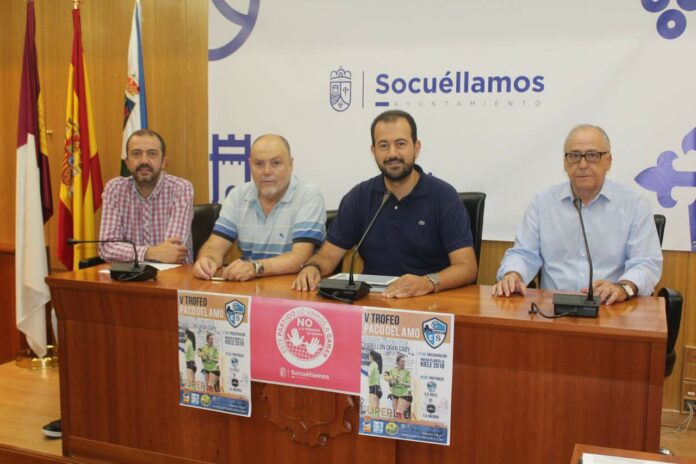 El concejal de Deportes, José Carlos Cobo, el presidente del CV Kiele, Francisco Santos, el ex−entrenador del Roycan Socuéllamos, Paco del Amo, y el concejal de Bienestar Social, José Manuel Fernández, han presentado esta mañana el “V Trofeo de Voleibol Paco del Amo” que se disputará mañana en el pabellón socuellamino Gran Gaby. Este trofeo, que alcanza su quinta edición, servirá también para presentar ante la afición al equipo senior del CV Kiele Socuéllamos, que este año disputará la Superliga 2, y enfrentará a las socuellaminas con el CV Madrid de Superliga Iberdrola.