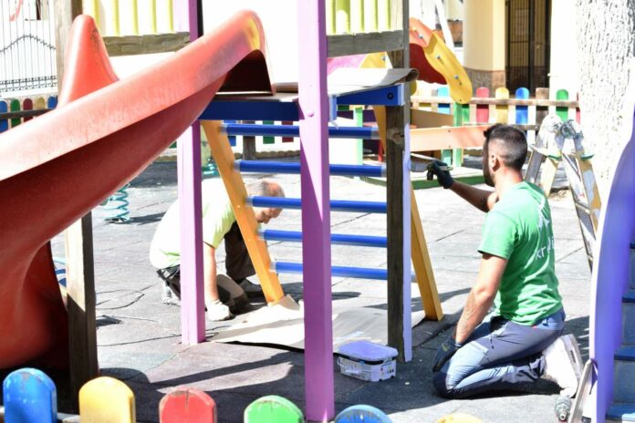 Los trabajos a realizar consisten en el pintado de las vallas y otros elementos del parque, la reparación de aparatos, así como la sustitución de las losas de caucho en caso de que sea necesario.