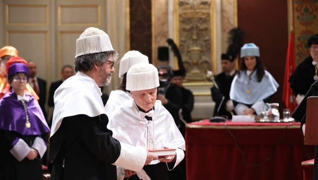En la ceremonia se le ha entregado el birrete laureado, el Libro de la Ciencia, un anillo y guantes blancos. En un momento del acto –que se ha cerrado con la tradicional interpretación del ‘Gaudeamus Igitur’– se ha investido también a una representación de doctores de la Universidad Complutense.