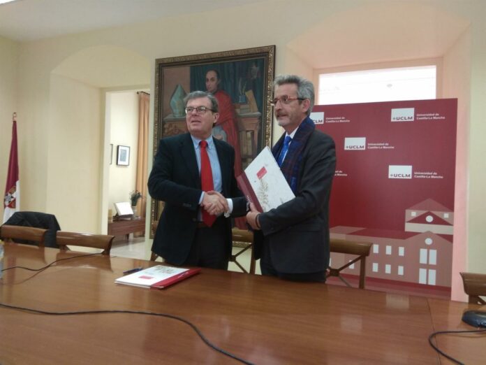 Una cooperación que se ha materializado este jueves con la firma por parte del rector, Miguel Ángel Collado, y del presidente de la DO ‘Valdepeñas’, Jesús Martín, del primero de una serie de acuerdos para poner los conocimientos de la comunidad universitaria al servicio de mejorar la calidad y la competitividad de los vinos de esta Denominación de Origen.