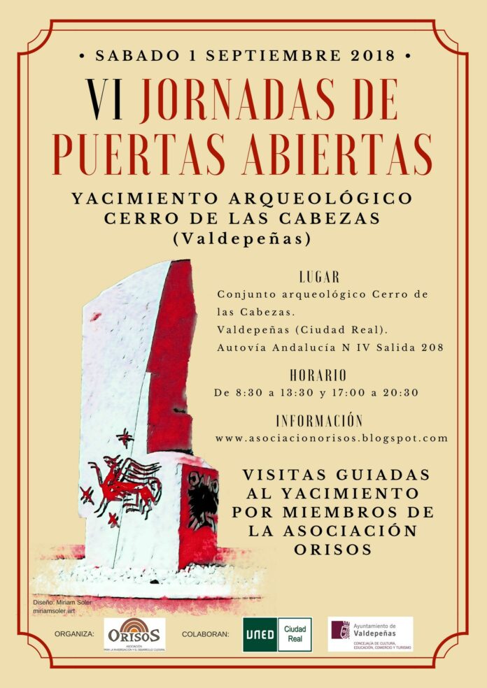 La Asociación para la Investigación y el Desarrollo Cultural ORISOS va a llevar a cabo el sábado, día 1 de septiembre, la VI Jornada de Puertas Abiertas del Cerro de las Cabezas, coincidiendo con la celebración de las LXV Fiestas de la Vendimia y el Vino de Valdepeñas.