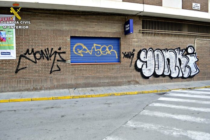 La Guardia Civil de Cuenca ha detenido a dos personas de 18 y 20 años de edad, como supuestos autores de 19 delitos de daños, tras pintar grafitis por diversos lugares de la localidad de Tarancón.