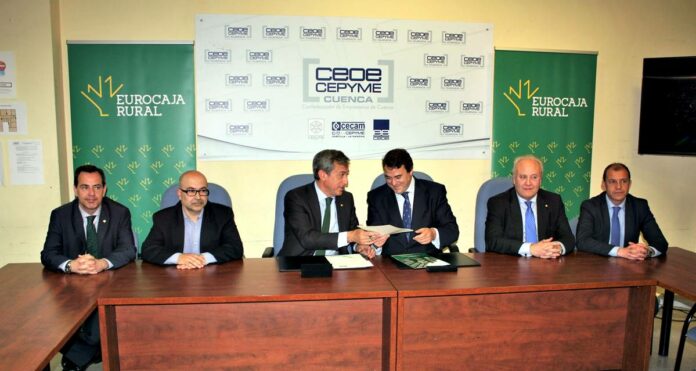 El convenio fue rubricado por el presidente de Eurocaja Rural, Javier López, y el presidente de CEOE CEPYME Cuenca, David Peña, en la sede de la Confederación Empresarial conquense.