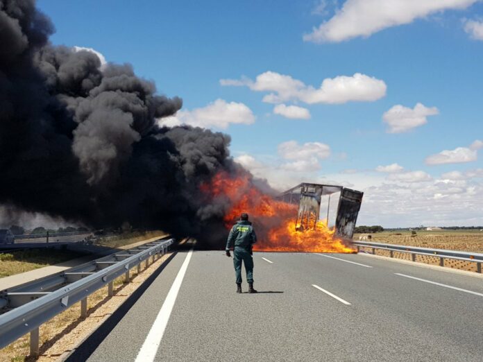 Última hora: arde un camión en la A-3, en la Almarcha (Cuenca)