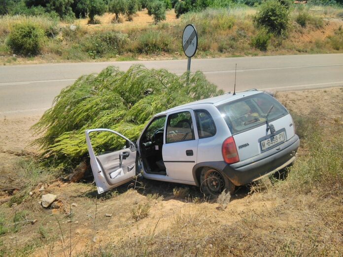 Ese es el mensaje principal que lanzaban desde la cuenta oficial del CEIS de Guadalajara -el Consorcio de Bomberos de la provincia de Guadalajara- tras acudir a ayudar al conductor de este vehículo, en el término municipal de Sacedón, que se salió de la carretera.