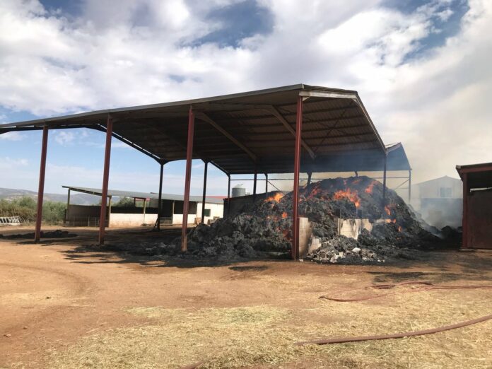Efectivos del Sepei de Albacete han tenido que actuar para sofocar un incendio de paja en Villapalacio.