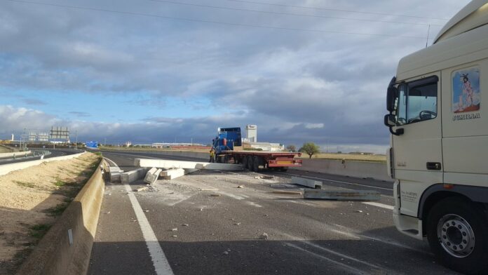 Un camión perdía parte de la carga pesada que transportaba pero, afortunadamente ningún vehículo resultaba implicado, y por supuesto tampoco ha habido que lamentar heridos.