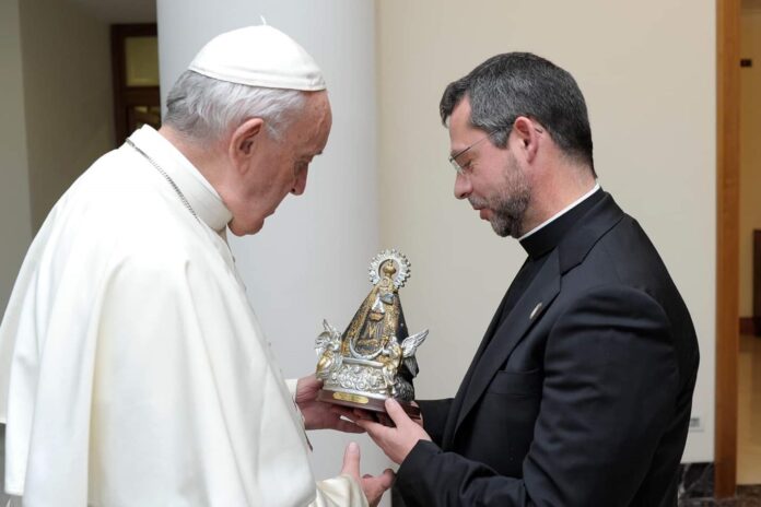 El Papa Francisco ha recibido este lunes, de manos Francisco Sevilla, sacerdote de la Diócesis de Albacete, una imagen de la Virgen de Los Llanos, patrona de la ciudad, como regalo de cumpleaños que será este martes.