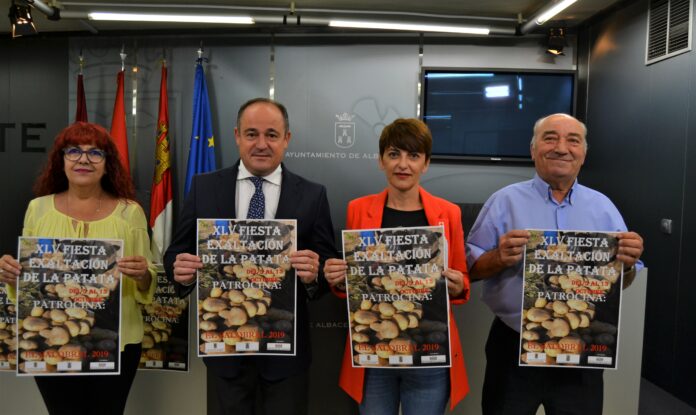 El vicealcalde de Albacete, Emilio Sáez, junto a la concejala de Barrios y Pedanías, Ana Albaladejo; y la alcaldesa de El Salobral, Elena Díaz, han presentado esta mañana la 45 edición de las Fiestas de la Exaltación de la Patata, que se celebran en esta localidad de forma ininterrumpida desde 1974 y a través de las se difunde y promociona la calidad de las cinco variedades de patata que se cultivan en esta pedanía.