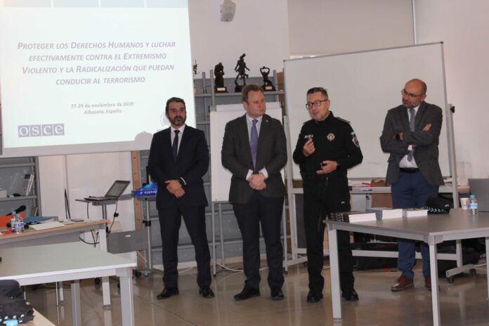 El alcalde de Albacete, Vicente Casañ, ha agradecido el esfuerzo de la Policía Local de Albacete por no perder el tren de la formación y rodearse de los mejores expertos a nivel europeo para avanzar en la mejora de nuestra seguridad. “Con su formación no solo mejoran nuestra seguridad, sino que protegen a esos colectivos más vulnerables de caer en el extremismo que puede terminar en la violencia terrorista”, ha dicho.