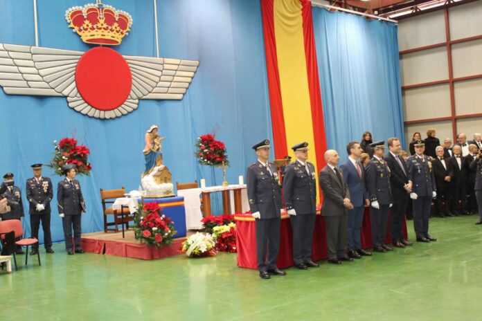 Los actos han dado comienzo con una misa en honor de la Virgen de Loreto que ha sido oficiada en uno de los hangares de la base de Los Llanos. Terminada la ceremonia religiosa se ha procedido a la entrega de distinciones a civiles y militares como reconocimiento público por su buen hacer diario. El alcalde ha tomado partida en la imposición de medallas junto al presidente del Tribunal Superior de Justicia, Vicente Rouco; y el delegado del Gobierno, Francisco Tierraseca, además de los tres coroneles.
