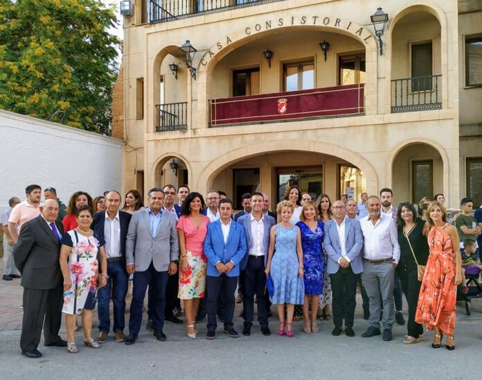 El presidente de la Diputación de Albacete, Santiago Cabañero, la vicepresidenta III de la institución provincial, Amparo Torres, y el diputado del SEPEI e Igualdad, Pedro Antonio González, han participado en los actos de apertura de las fiestas en honor al Cristo y la Vendimia que han arrancado hoy en Madrigueras.