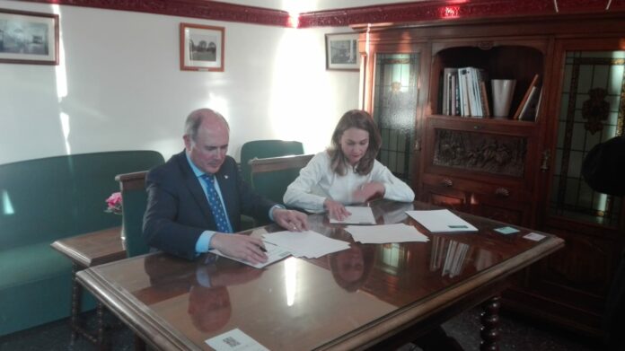 La directora del IES Bachiller Sabuco, Llanos Navarro, y el presidente de la Fundación Globalcaja Albacete, Herminio Molina, han firmado un nuevo acuerdo de colaboración, por el que se destinan recursos para los planes de formación y actualización del profesorado del Bachillerato Internacional que se imparte en dicho centro.