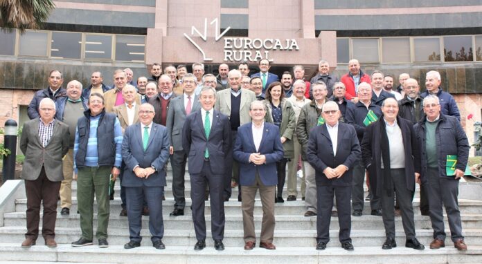 El presidente de Eurocaja Rural, Javier López Martín, y el director general de la misma, Víctor Manuel Martín López, han participado en el acto de clausura de la Asamblea Extraordinaria de Oleotoledo, convocada con el objetivo de renovar algunos cargos de su consejo de administración, y exponer a sus socios la situación actual respecto al precio del aceite, las medidas propuestas y aprobadas por la Unión Europea para reequilibrar dichos precios y las soluciones de urgencia para hacer frente a los aranceles establecidos por Estados Unidos.
