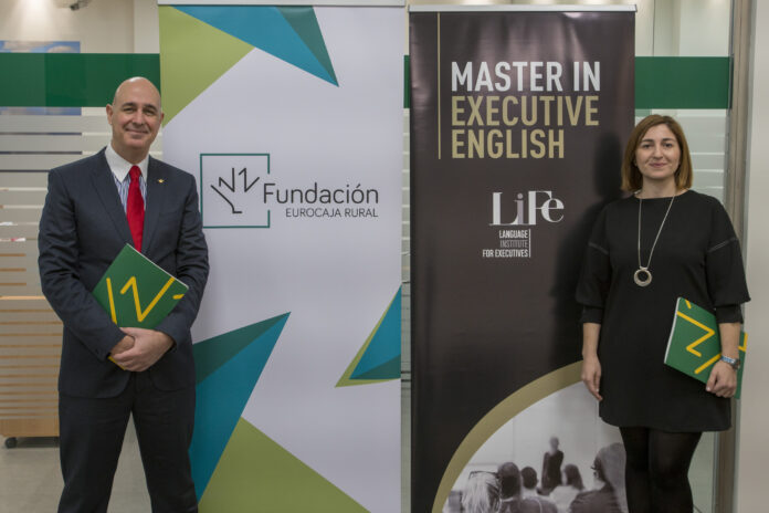El gerente de la Fundación Eurocaja Rural, Vicente Muñoz, y la directora académica de LIFE, Rosa Rico, presentaron este innovador programa de alta dirección para mejorar el nivel de inglés e impulsar la carrera profesional de sus alumnos con un exigente método de eficacia demostrada.