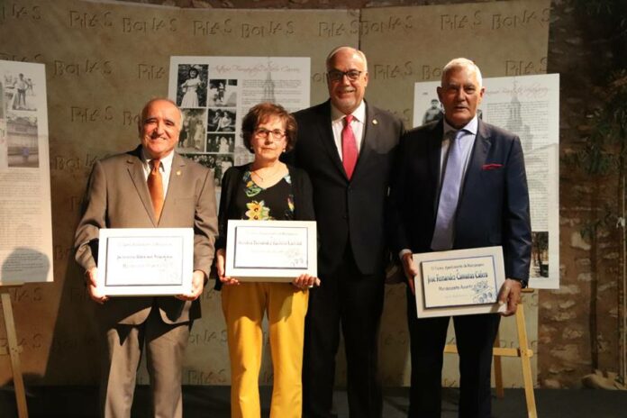 Jerónimo Bautista, Antonia Fernández-Pacheco y José Fernández-Camuñas recibieron una placa conmemorativa y un ramo de flores de manos del alcalde Julián Nieva