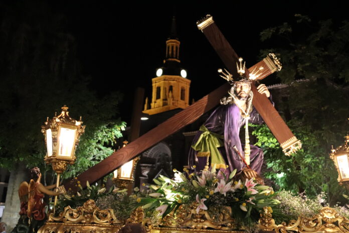 Entre mucha solemnidad y bajo la luz de la luna, la imagen de Nuestro Padre Jesús del Perdón fue desfilando por su calle hasta llegar a una abarrotadísima Plaza de la Constitución, donde los fieles no se perdieron la entrada en la parroquia de la Asunción de Nuestra Señora, nuevamente acompañada por las notas del himno nacional.