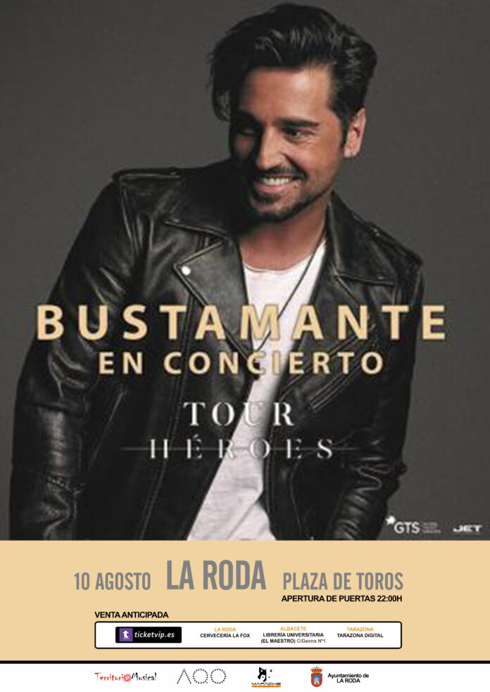 David Bustamante ofrecerá un concierto en La Roda con motivo de sus fiestas patronales, a celebrar del 3 al 11 de agosto. El cantante presentará en la plaza de toros de esta localidad su Tour Héroes, el sábado 10 de agosto.