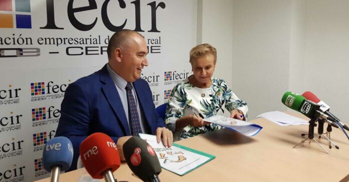 La sede de la Federación Empresarial de Ciudad Real (FECIR) ha acogido el convenio de colaboración suscrito por el presidente de esta organización empresarial, Carlos Marín, y la presidenta nacional de la Asociación de Familias y Mujeres del Medio Rural (Afammer), Carmen Quintanilla, con el que dicha Asociación entra a formar parte del comité organizador de la Feria Nacional de la Caza, Pesca y Turismo (FERCATUR).
