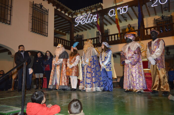 El cortejo fue transitando, una a una, por las calles de la Iglesia, San Miguel, Calle Mayor Alta, Camino Real, Don Sabino y Calle Mayor Baja hasta llegar a la Plaza Mayor, centro neurálgico del casco tradicional de la localidad, que ya registraba la presencia masiva de vecinos esperando la llegada del séquito desde varios minutos antes, donde se puso punto y final a la cabalgata pero no a esta mágica noche. Acto seguido Melchor Gaspar y Baltasar bajaron de su carroza para ser recibidos por el Alcalde de la Localidad, Alfonso Escudero y otros miembros de la corporación y ya sentados sobre unos tronos de la Plaza Mayor saludaron a todos los niños presentes, para concluir con la entrega de regalos ayudados por los miembros de la Asociación Los Perchas.