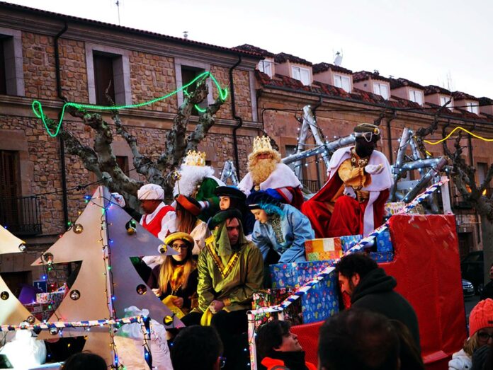 Por la tarde, a las 17 horas y 50 minutos llegaban de nuevo a la ciudad, pero esta vez en el tren, procedentes de Baides, a la estación de Sigüenza. Decenas de niños y niñas los que acudieron a recibirlos y a presenciar como subían en la carroza que para ellos había preparado el Ayuntamiento y las AMPAS de los colegios. A diferencia del año pasado, y a pesar del frío que cayó a plomo sobre Sigüenza cuando se puso el sol, no hubo ni una sola nube en el cielo, por lo que el recorrido se pudo completar en su totalidad. Malabaristas y zancudos han acompañado a los Reyes Magos en su recorrido, que comenzaba en la calle Alfonso VI. Tampoco ha faltado este año la música de la Banda de Cornetas y Tambores de la Cofradía de la Vera Cruz y del Santo Sepulcro de Sigüenza que, año tras año mejora y amplía su repertorio, como han demostrado hoy en una Cabalgata que hizo llover caramelos y confeti por las calles de Sigüenza.