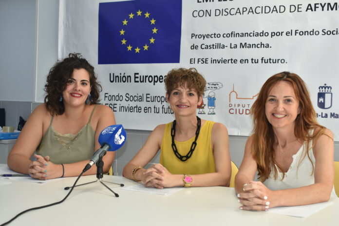 La presidenta de AFYMOS, Pilar Alarcón, la responsable del servicio de capacitación, Mari Carmen Vallejo, y la concejala de bienestar social, igualdad y diversidad, Vanessa Sáez, han ofrecido esta mañana una rueda de prensa en la que han hecho balance del Programa CREA 2018, que ha llevado a cabo esta asociación.