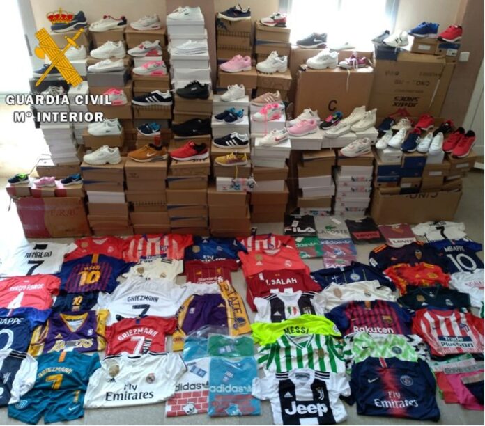 La Guardia Civil ha detenido a cinco hombres con edades comprendidas entre los 31 y los 44 años, por un delito contra el patrimonio relativo a la propiedad intelectual, cometido en la localidad de Villacañas. Se han intervenido unas 700 prendas de vestir y calzado falsificado de conocidas marcas deportivas con un valor en el mercado de 79.000 euros.