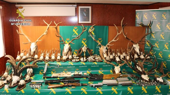 La Guardia Civil ha detenido a dos hombres de 36 y 70 años de edad por delitos de tráfico de armas, tenencia de armas prohibidas, tenencia de armas reglamentarias careciendo de permiso o autorización necesaria así como delito contra la flora y fauna.