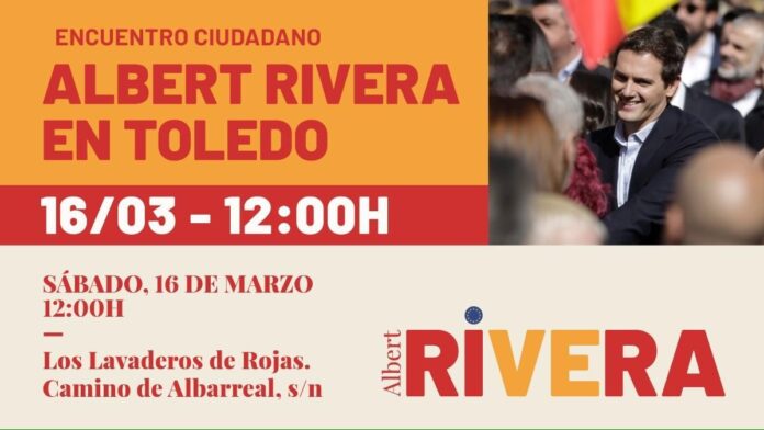 El presidente de Ciudadanos, Albert Rivera, visitará Toledo este sábado, 16 de marzo, en un encuentro ciudadano que comenzará a las 12.00 horas en la capital, según informa la formación naranja en su página web.