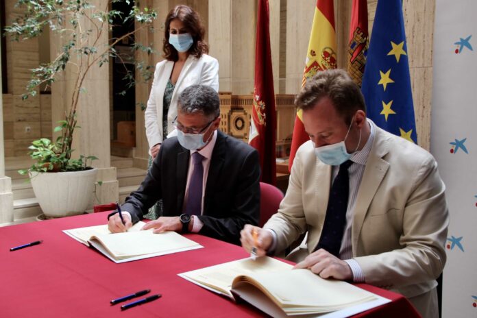 El alcalde de Albacete, Vicente Casañ, el director territorial de CaixaBank en la Zona Centro, Rafael Herrador, y la directora general de MicroBank, Cristina González, han firmado un convenio de colaboración para facilitar la financiación de proyectos empresariales a través de microcréditos, a los que podrán acceder las personas carentes de avales. El acto ha contado también con la participación de la concejal de Emprendimiento e Innovación, Laura Avellaneda.
