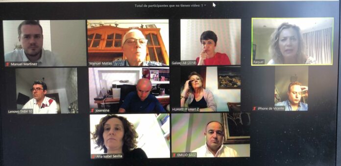 El alcalde, Vicente Casañ, junto al vicealcalde, Emilio Sáez; la concejala de Barrios y Pedanías, Ana Albaladejo, y el concejal de Participación, Manu Martínez, han tomado parte de esta primera reunión por videoconferencia en la que han participado, además de José Reina y Guillermo Tauste, en representación de la Asociación de Vecinos del barrio Universidad; Raquel Haro y Ana Sevilla, dando voz a la asociación vecinal del barrio de Medicina; Manuel Matías, presidente de la Asociación de Vecinos del barrio Sepulcro-Bolera e Isabel Ortiz Estrada, en representación de la Asociación de Vecinos de Parque Sur.