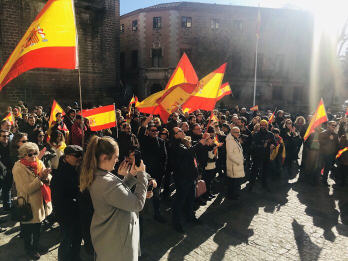 Unas 450 personas, según la Subdelegación del Gobierno, y unas 300, según los organizadores, se han reunido en la Plaza Mayor de Ciudad Real a apoyar la concentración convocada por la plataforma ‘España existe’ y apoyada por Vox.