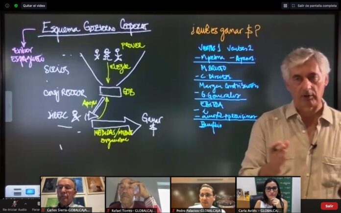 La Fundación Globalcaja HXXII ha reunido a una veintena de presidentes y gerentes de cooperativas de Castilla-La Mancha para participar en la sesión de Coaching para Consejos Rectores «Cinco claves de acción”. En el evento, celebrado virtualmente, han estado presentes, los presidentes de la Fundación y de Globalcaja, Rafael Torres y Carlos de la Sierra; el director general de la entidad, Pedro Palacios; y las directoras generales de la Fundación Globalcaja HXXII y de la Fundación Globalcaja Cuenca, Carla Avilés y Henar de la Sierra.