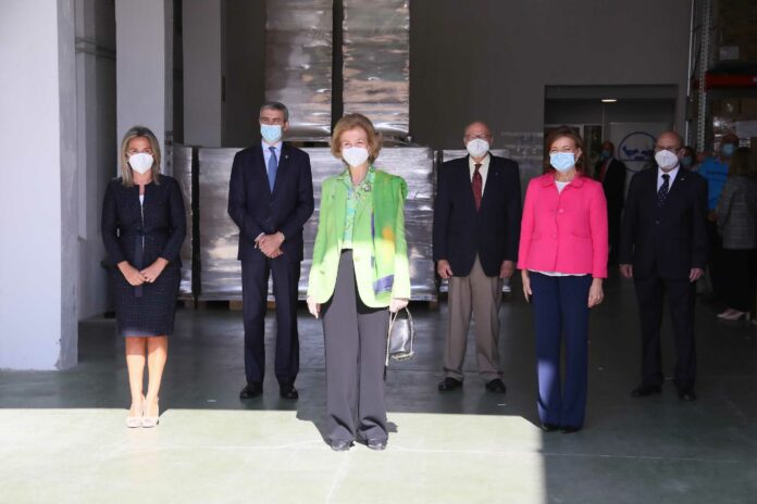En su visita, la Reina Sofía ha podido ver de primera mano cómo se organiza el reparto de alimentos por parte de esta institución y conocer a los voluntarios que mantienen viva su actividad.