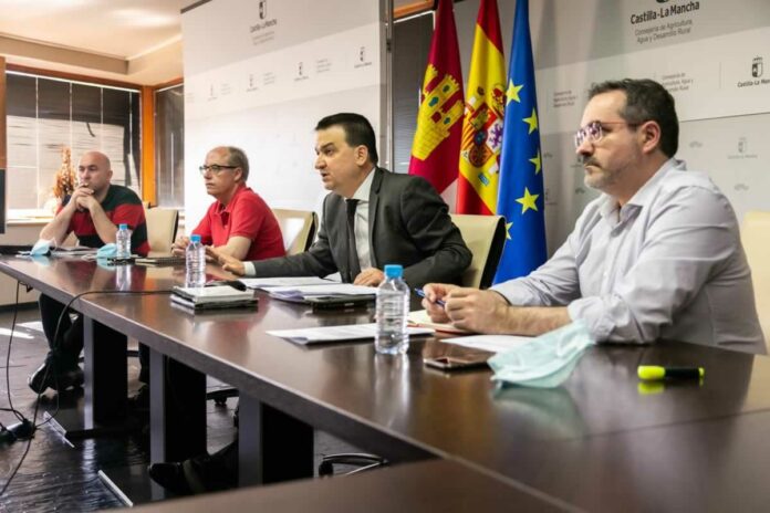 El consejero de Agricultura, Agua y Desarrollo Rural del Gobierno de Castilla-La Mancha, Francisco Martínez Arroyo, ha recalcado que «Castilla-La Mancha necesita hoy probablemente más que nunca defender su posición en materia de agua de manera conjunta con todos detrás, con todo el tejido social de la región y también con todos los partidos políticos». Así lo ha trasladado Martínez Arroyo esta tarde tras la reunión mantenida mediante videoconferencia con los representantes de la Federación de Regantes de Castilla-La Mancha.