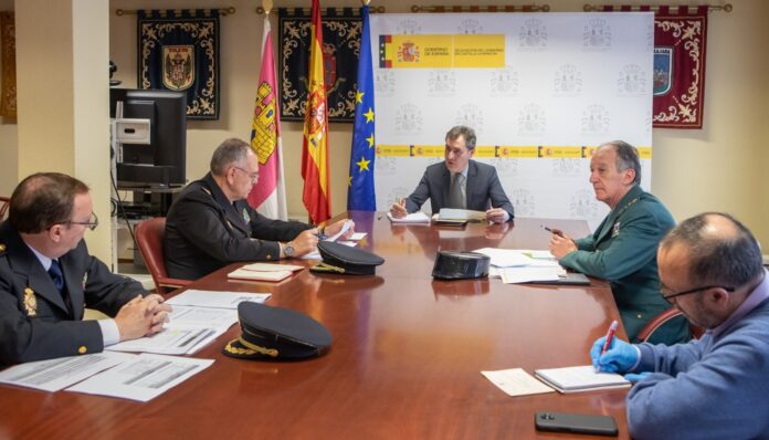 Tierraseca ha mantenido una reunión de coordinación de las actuaciones frente al COVID-19 con el jefe superior de Policía de Castilla-La Mancha, Félix Antolín, y el jefe de zona de la Guardia Civil en Castilla-La Mancha, el general de División Francisco Esteban Pérez, en la Delegación del Gobierno.