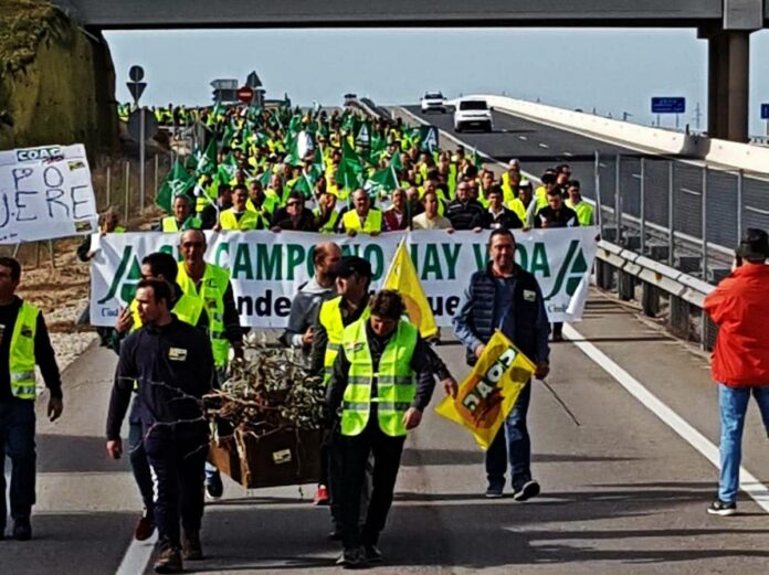 Más de 5.000 agricultores y ganaderos de toda la provincia de Ciudad Real y cerca de 1.500 tractores han protagonizado cuatro concentraciones, entre las 11:00 y las 15:30 horas, por el futuro del sector agrario. Las organizaciones ASAJA, COAG y UPA califican de “éxito rotundo” estas movilizaciones que han cortado la A-4 (a la altura de Manzanares y Valdepeñas), la CM-42 (en Tomelloso), la A-43 (cerca de Manzanares y Tomelloso) y las vías del tren en la Estación de Socuéllamos.