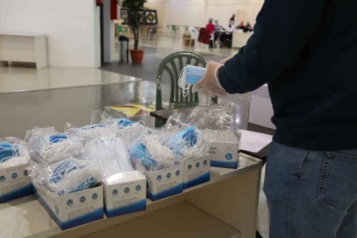 El ensobrado se ha realizado en el Pabellón de Muestras de Fercam, previamente limpiado y desinfectado siguiendo las indicaciones de la autoridad sanitaria. Del mismo modo, los embalajes externos de cartón, tanto de las mascarillas como de los sobres, también se han desinfectado.