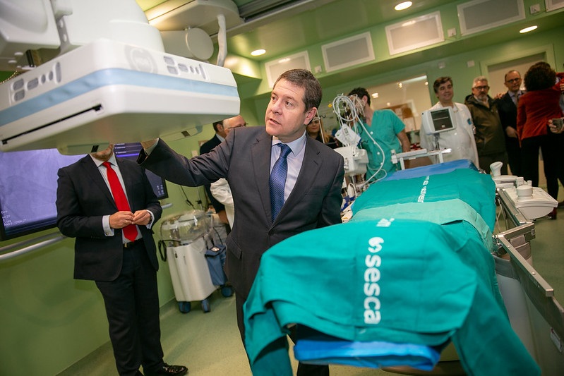 El presidente de Castilla-La Mancha, Emiliano García-Page, ha visitado este miércoles la nueva Sala Mixta de Hemodinámica Cardiaca y Radiología Intervencionista con la que el Gobierno de Castilla-La Mancha ha dotado al Hospital ‘Virgen de la Luz’ de Cuenca y que en seis meses de funcionamiento ha permitido la realización de más de 400 actos médicos, entre ellos 200 cateterismos cardiacos, evitando desplazamientos a los pacientes conquenses.