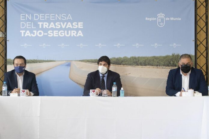 El presidente de la Comunidad, Fernando López Miras, ha presidido este lunes una reunión en defensa del trasvase para mostrar «unidad de toda la Región de Murcia» -no solo agricultores- en la defensa del acueducto ante «un ataque sin precedentes», poniéndose así a la cabeza de la defensa de esta infraestructura y abogando por «hacer frente común» entre las comunidades afectadas.
