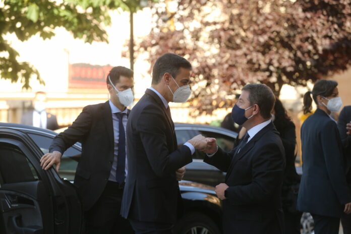 El presidente de Castilla-La Mancha, Emiliano García-Page, ha aprovechado este lunes la visita del responsable del Gobierno central, Pedro Sánchez, a Toledo para darle directamente las gracias por lo que entiende una gestión del conflicto hídrico entre la región y el Levante desde una postura de «diálogo inteligente».